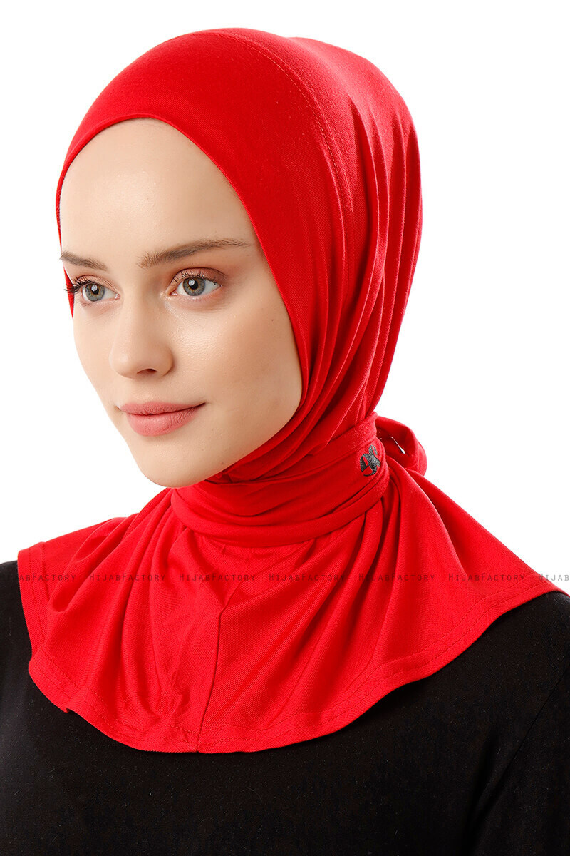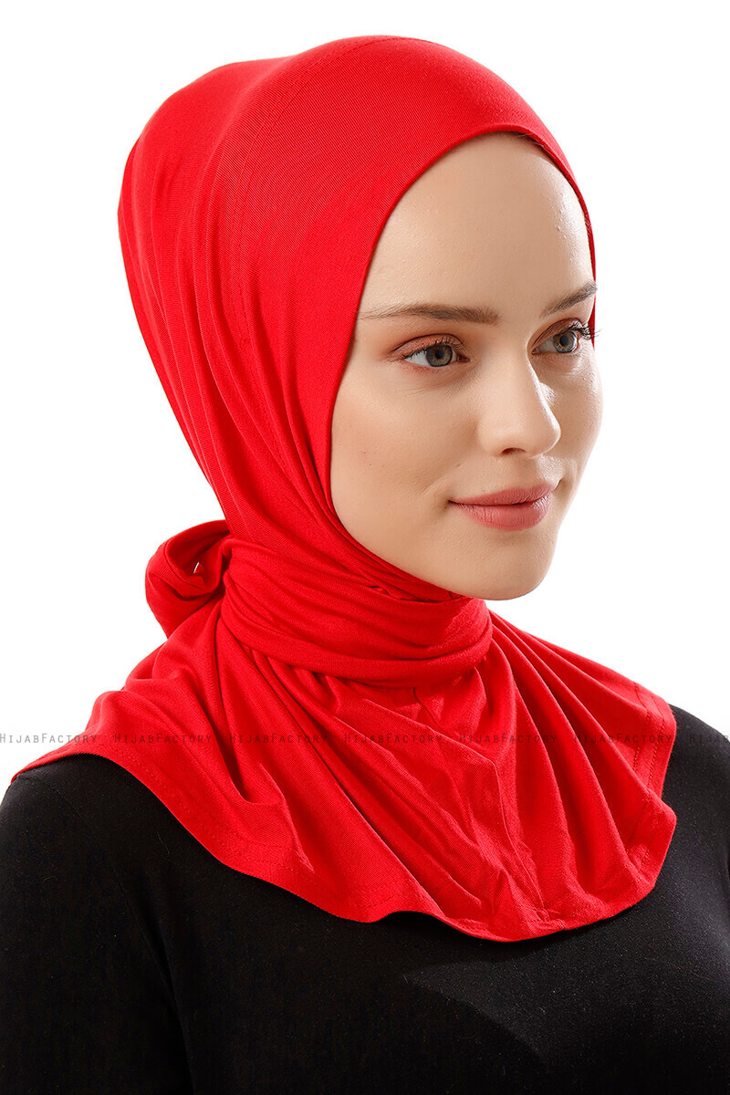 Sportif Plain - Röd Praktisk One Piece Viskos Hijab från Ecardin I Turkiet.