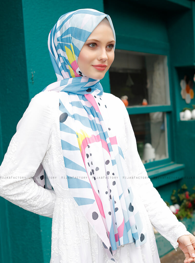 Pariza - Turkos Mönstrad "Jersey & Chiffon" Hijab Från Sal Evi.
