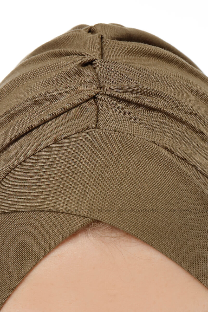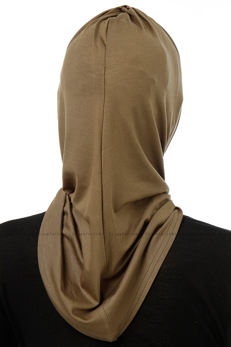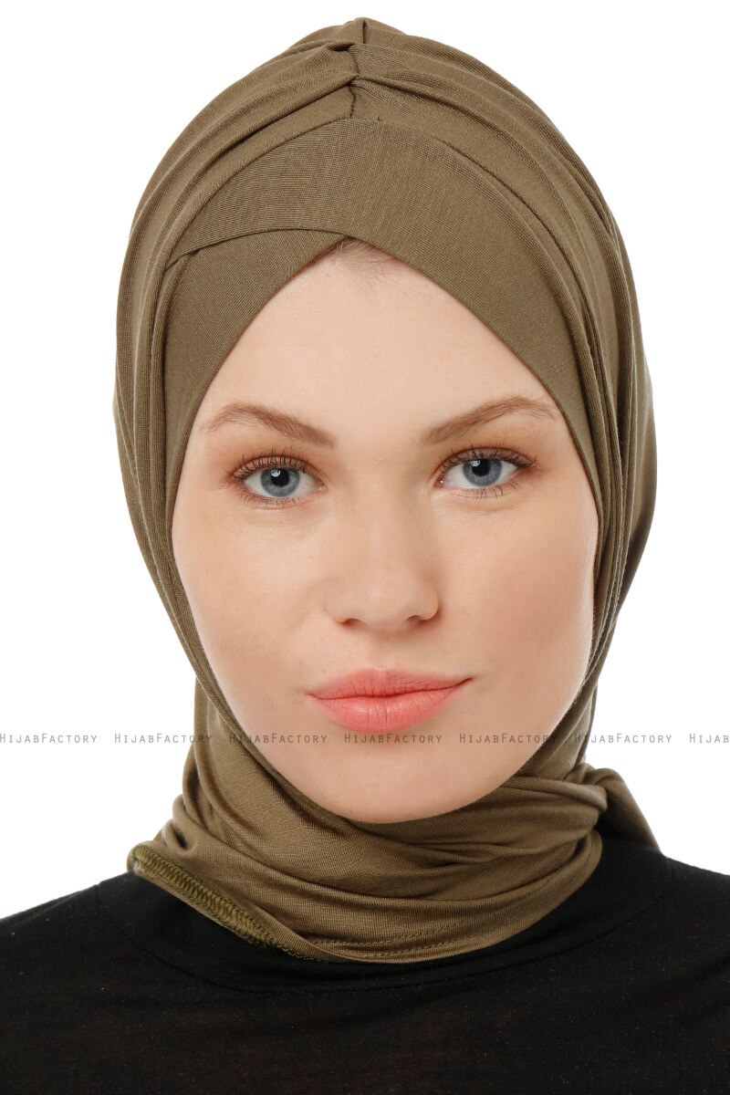 Isra Cross - Khaki Praktisk One Piece Viskos Hijab från Ecardin I Turkiet.